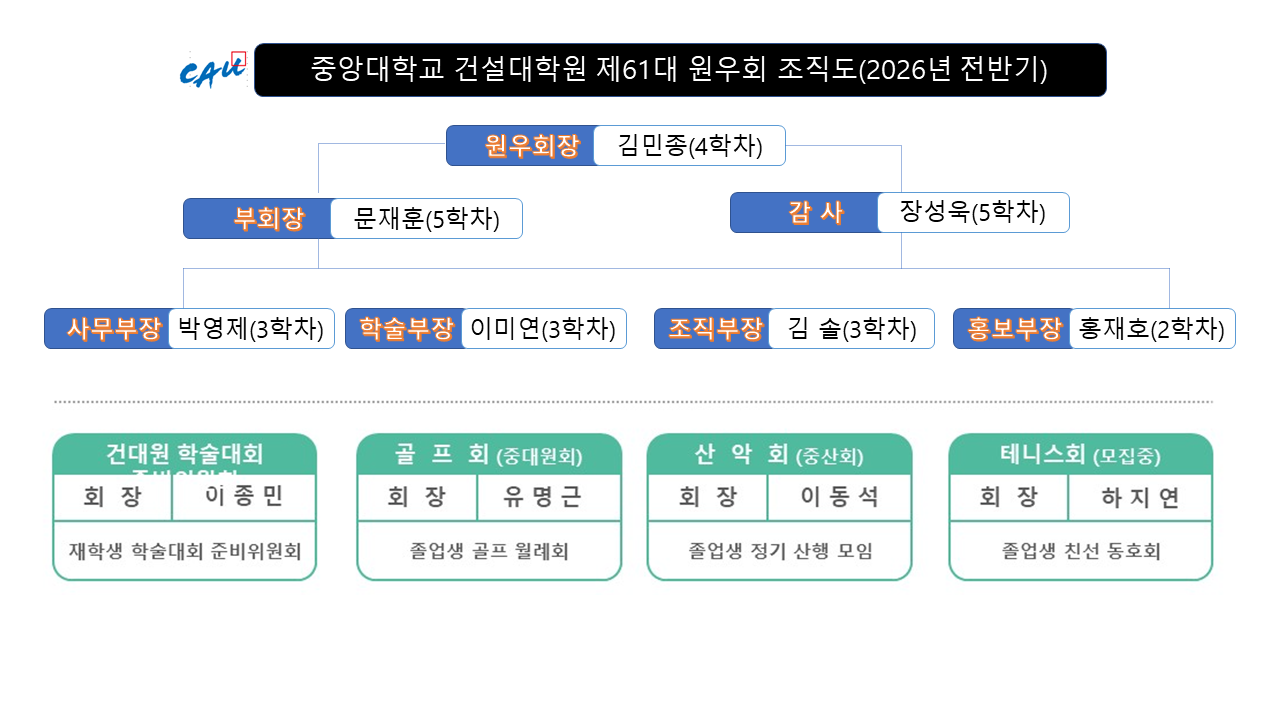 조직부장 원우회 조직을 유기적으로 구성하여(각종동회) 제반사업 수행을 원할히 하도록 한다.